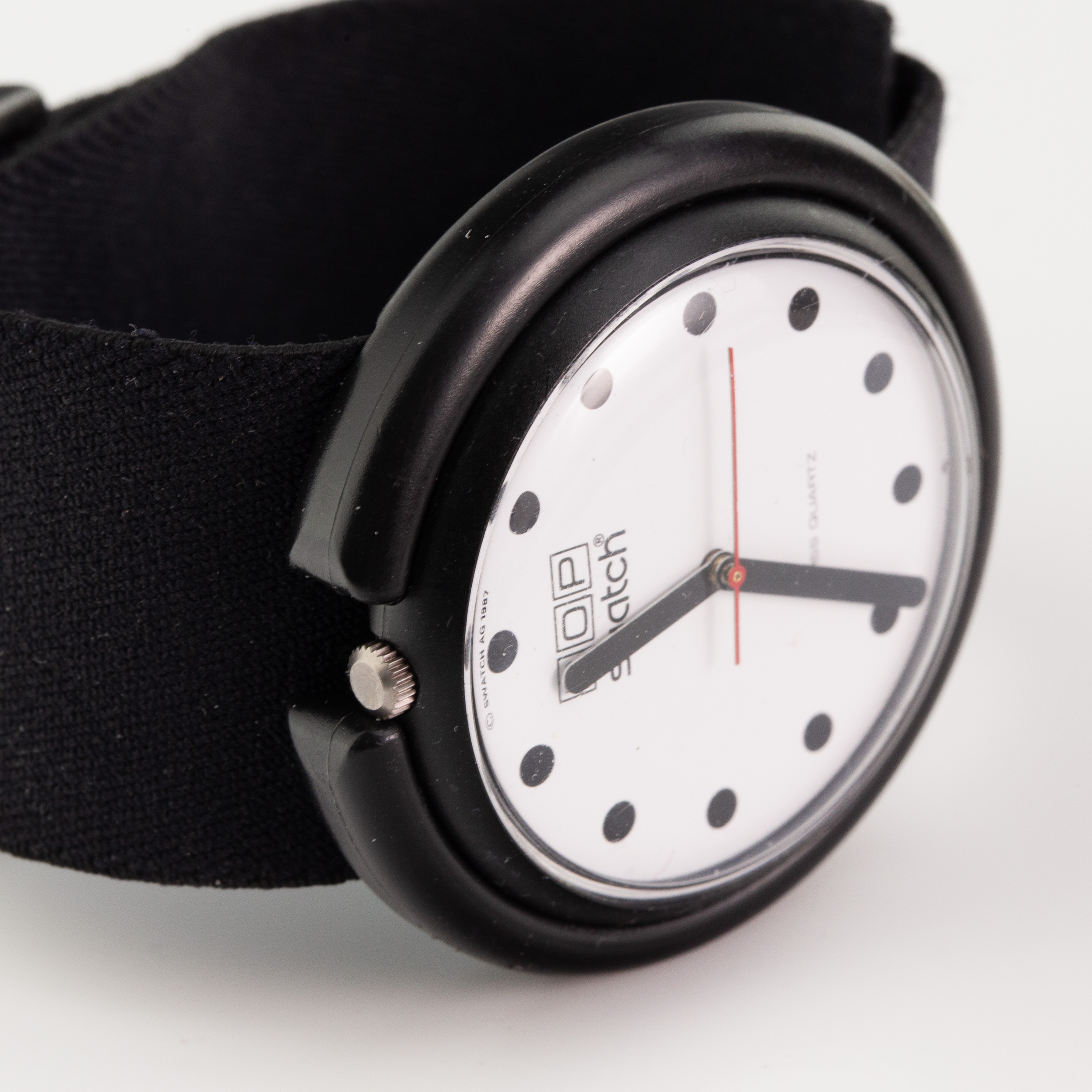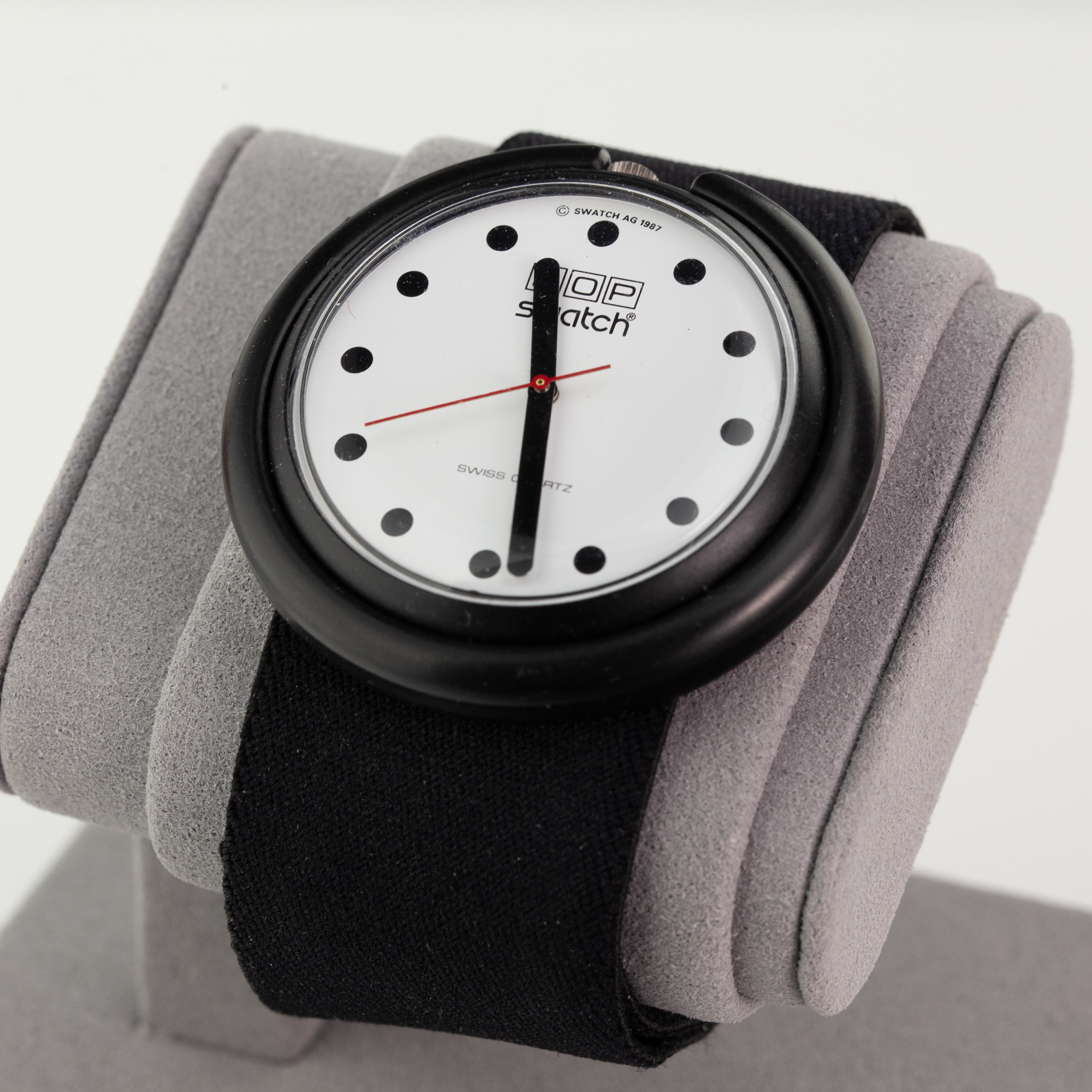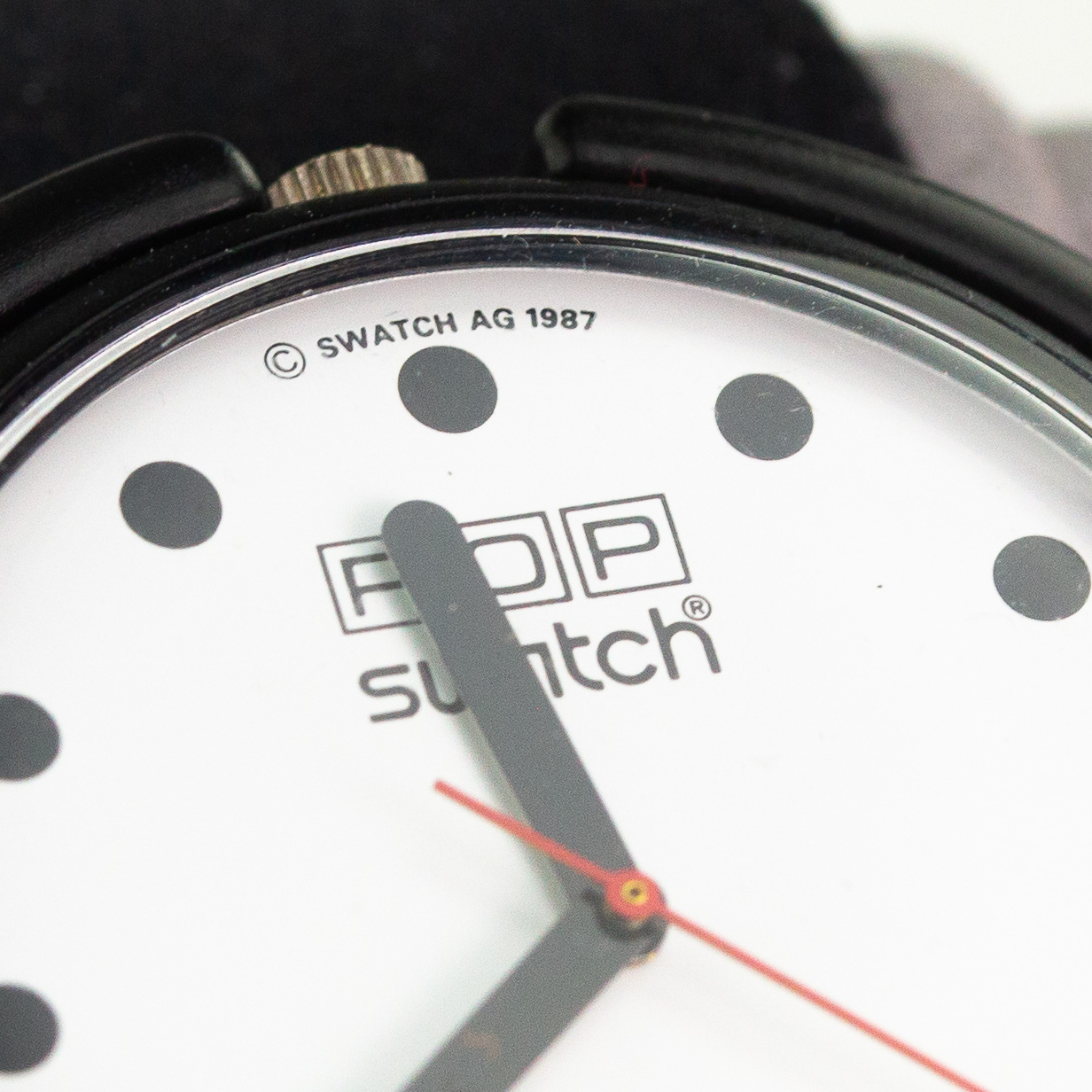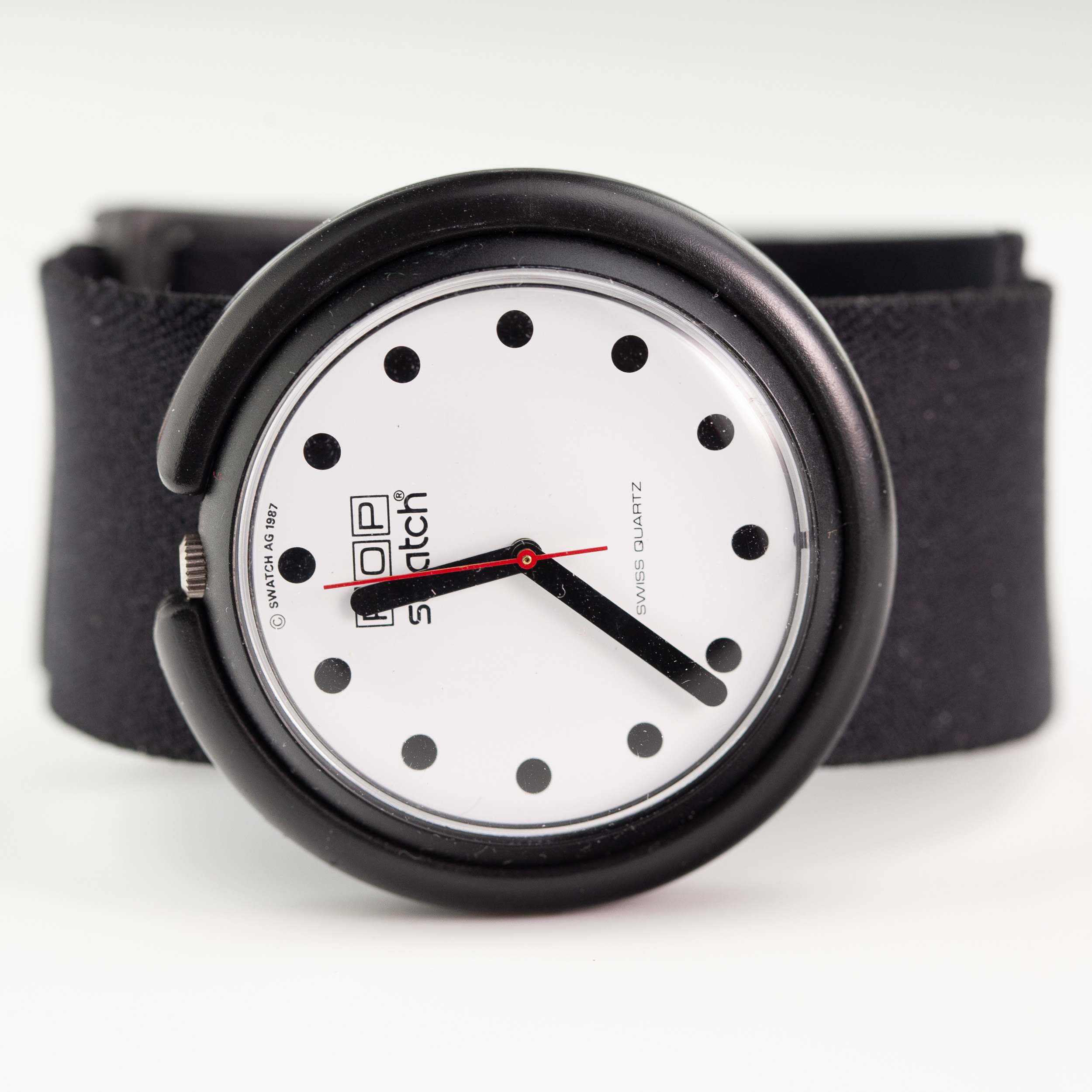 - Strap: Original Black/White Pop Swatch Strap with Clip